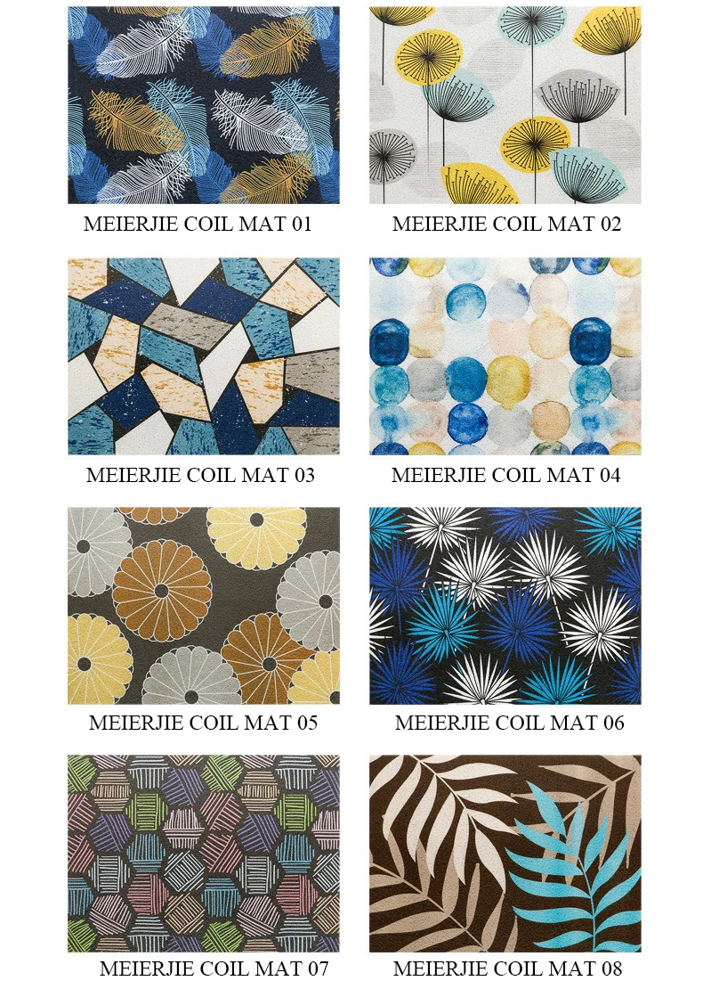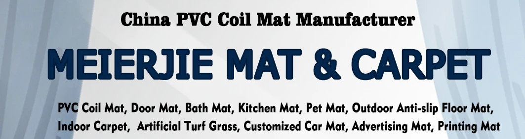 MEIERJIE pvc coil mat is made of 100% environment-friendly PVC by machine, Soft, durable, flame retardant, moisture resistant, fatigue resistant, slip resistant, etc The pvc coil mat can be customized according to your needs in different shapes, thicknesses, sizes. Such as door mat, floor mat, kitchen mat, logo mat, car floor mat, pet mat, etc. | 2 | |