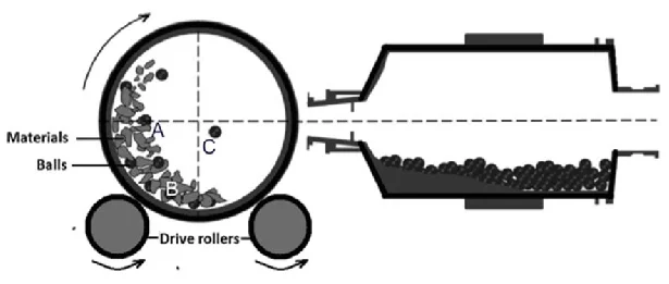 Ball mill is a type of grinder used to grind and blend materials for use in mineral dressing processes, paints, pyrotechnics, ceramics and selective laser splintering. It works on the principle of impact and attrition: size reduction is done by impact as the balls drop from near the top of the shell.