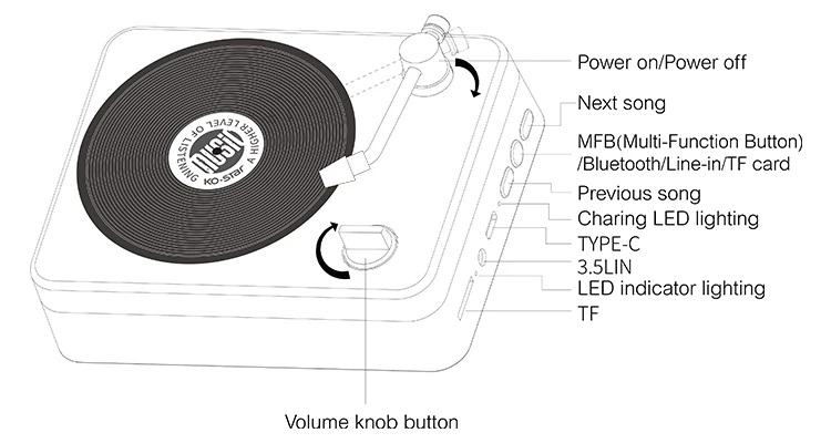 Product Name | Classic and compact design with portable size Turntable Bluetooth speaker mini portable bluetooth sound equipment speaker |