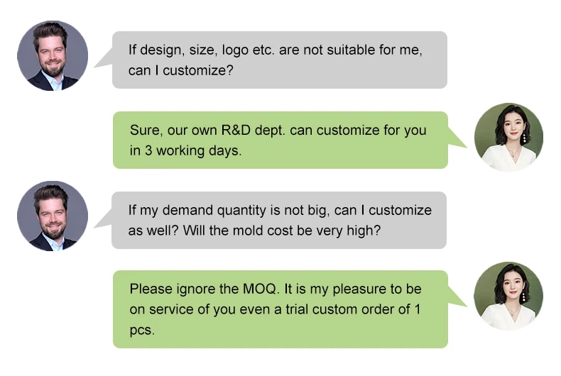 customize sample in only 3 days, 12 days for production lead time.Quality is our culture, we accept small trial order to check quality and support OEM & ODM service, hope to grow with every
