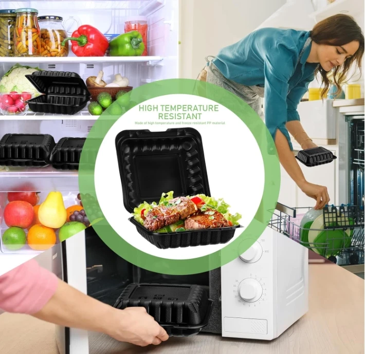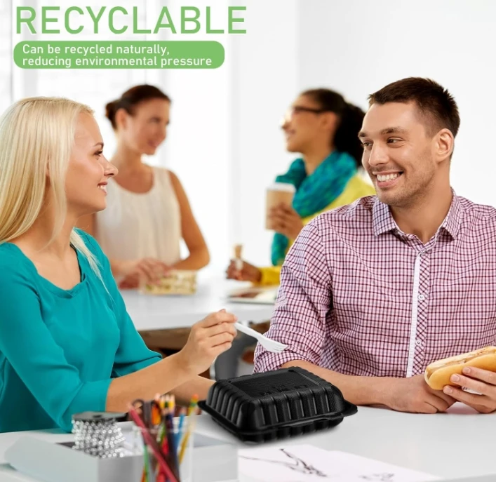 Biodegradable Clamshell Lunch Box To Go Food Containers 6 Inch Black Clear Hinged Takeout Container Food