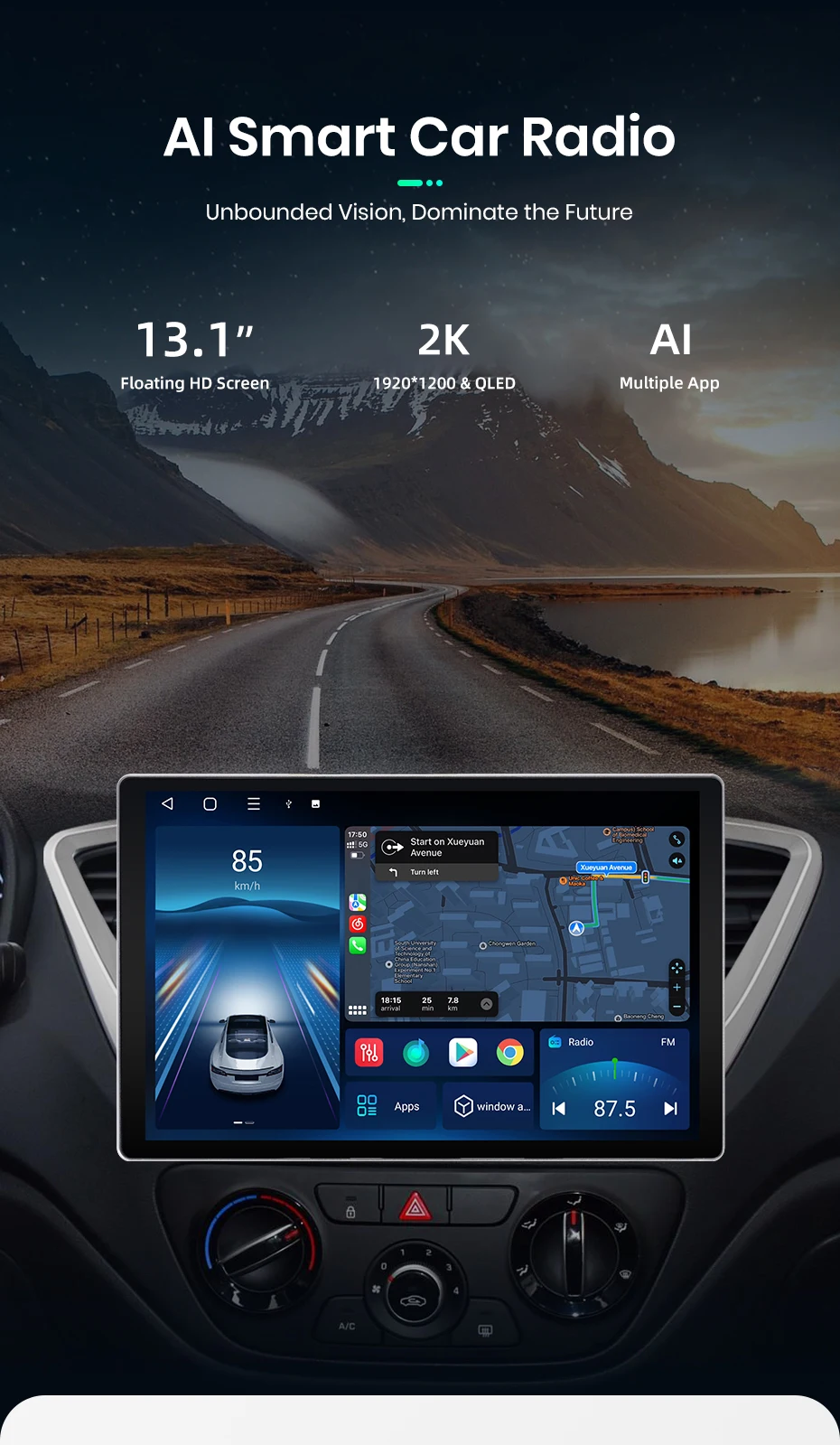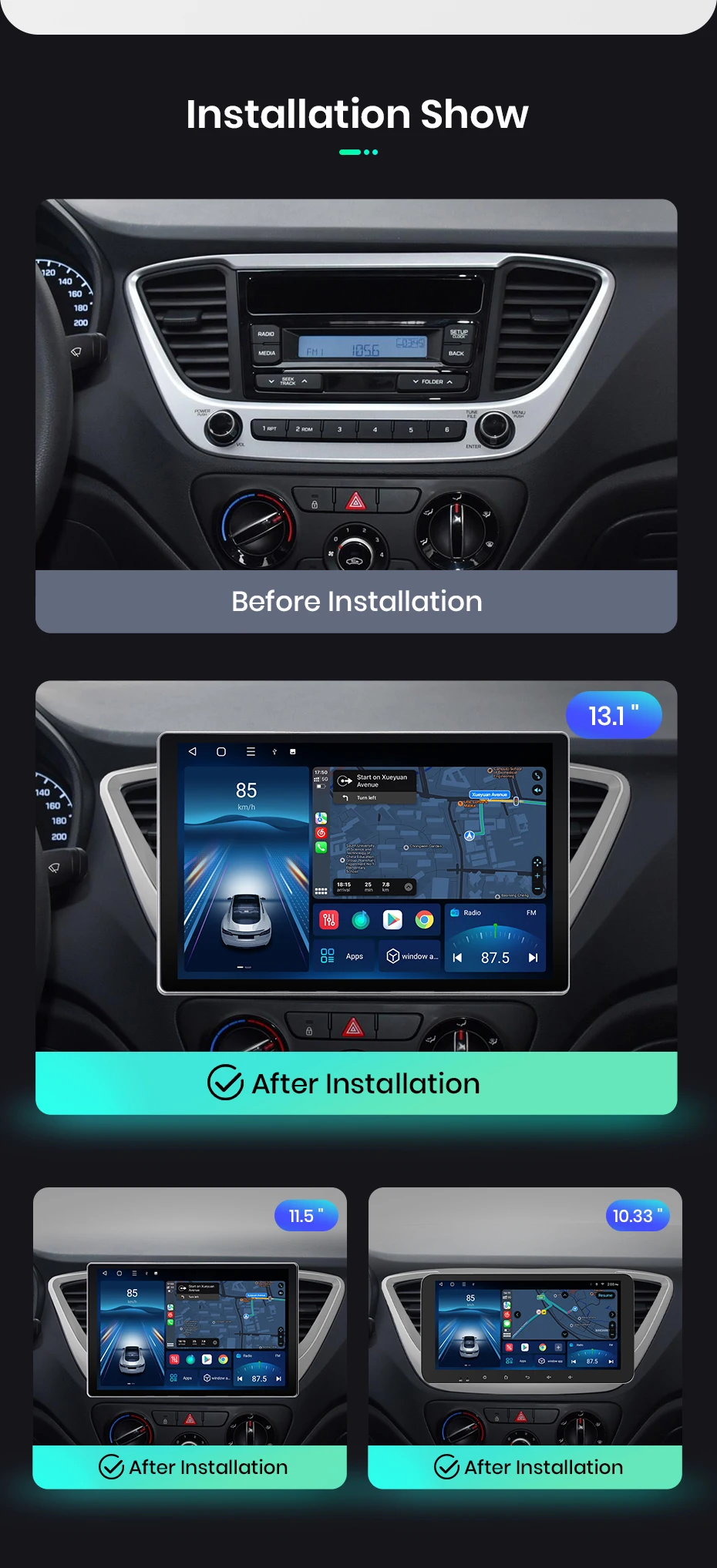 Kirinavi Android 14.0 Car Multimedia DVD Player 13.1 Inch Car Stereo Radio For Hyundai Solaris 2 Verna 2017 2020 GPS Navigation