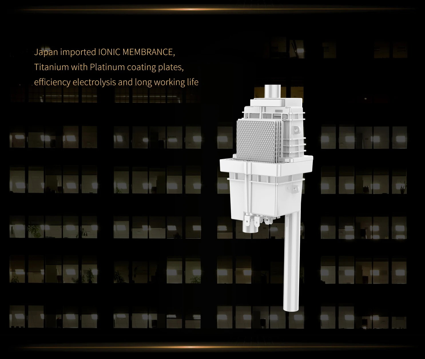 Inlet water temperature | Lower than 45 Celsius degree | plates material/size: | Titanium with platinum 13.5cm*9.4cm |