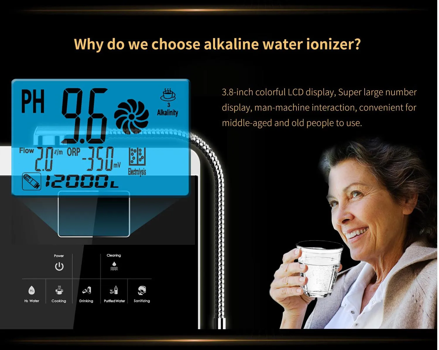 Product Name | EHM-959 Instant hot function household water ionizer Kangen alkaline water maker PH2.5~11.2 | Voltage (V): | AC220V~240V,50Hz or 110V, 60Hz |