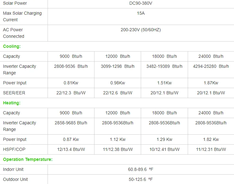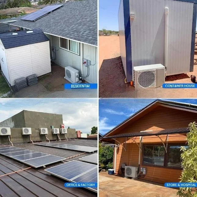 Hybrid Solar Air Conditioner is engineered from the ground up for use with solar. All electrical components are DC powered including DC Compressor, high-efficiency DC Fan Motors, DC Valves & Solenoids, etc.