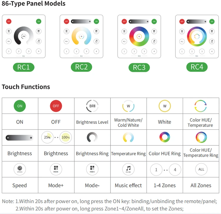 3. Support App control, 2.4G touch remote control and 2.4G touch 86-type control panel;