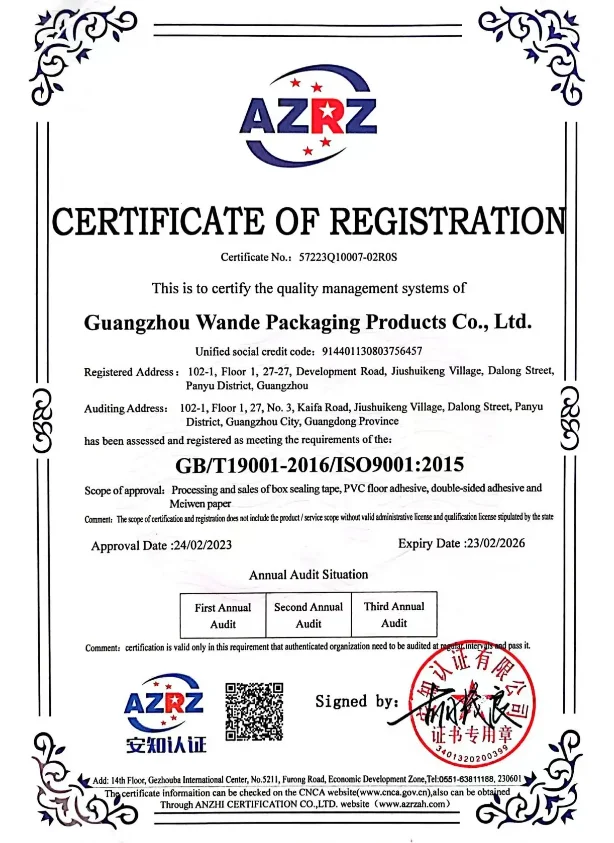 We have been a packaging material factory specializing in the logistics packaging industry for 14 years,and are a strong manufacturer integrates(design/production/processing/customization/sales/export trade). We are an ISO system certification factory/SGS/Rusht product certification/14 years of deep cultivation in the packaging industry/export qualification certification.Our main products include sealing tape,PE winding film, textured paper, and double-sided adhesive packaging tape. Experienced in cross-border sales.our products are exported to countries and regions such as Africa,Southeast Asia,Europe and America.We are a dual certification enterprise for product trademarks and patents,familiar with the export customs declaration process, integrated cross-border ser-vices,emphasizing intellectual property protection,and integrated cooperation with professional sales and service teams.