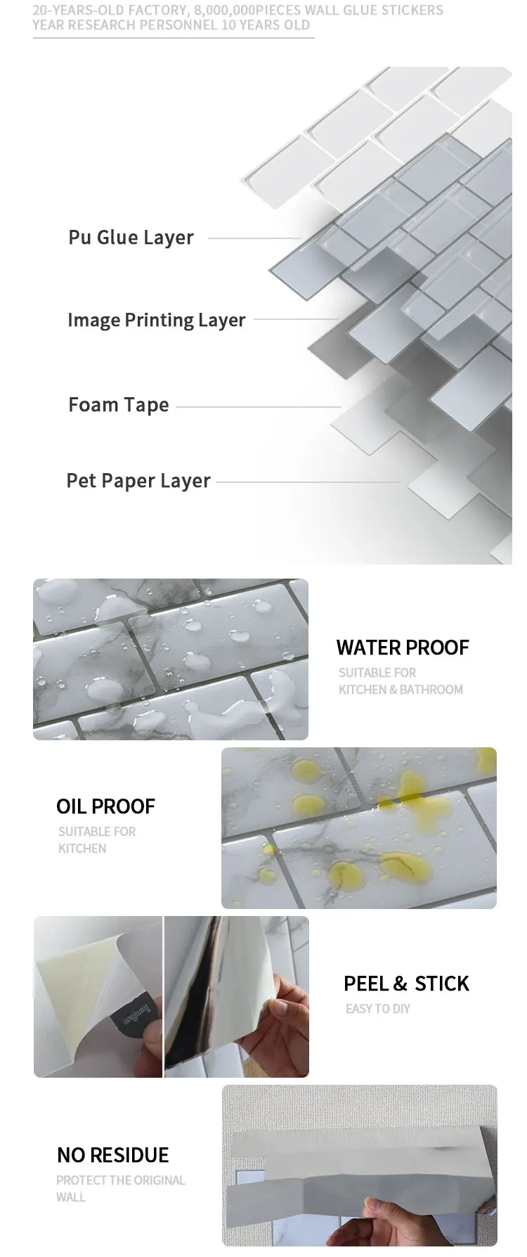 Feature | Waterproof, Heat Insulation | Application | Easy DIY, peel and stick on wall |