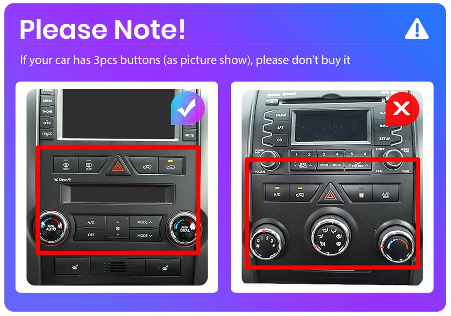 1. If your car has 3 buttons (pictured on the right), the radio is not suitable for your car, please don't buy it