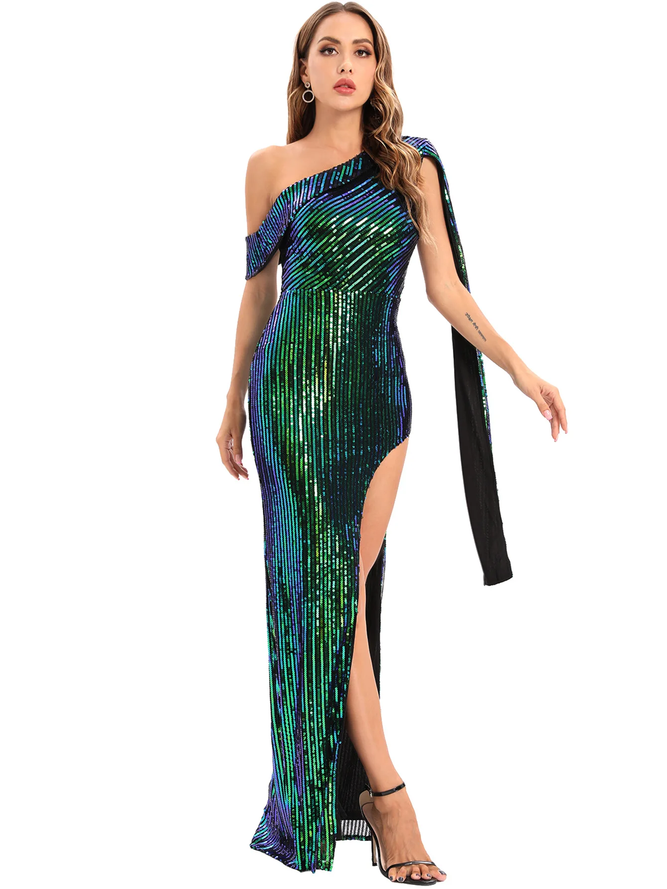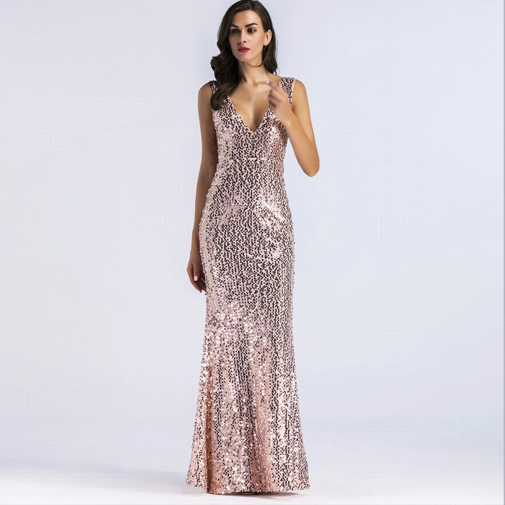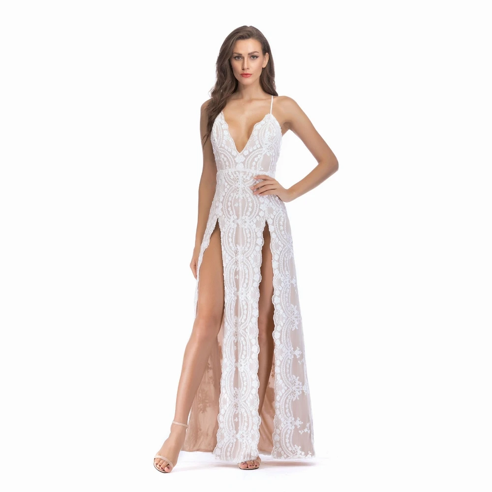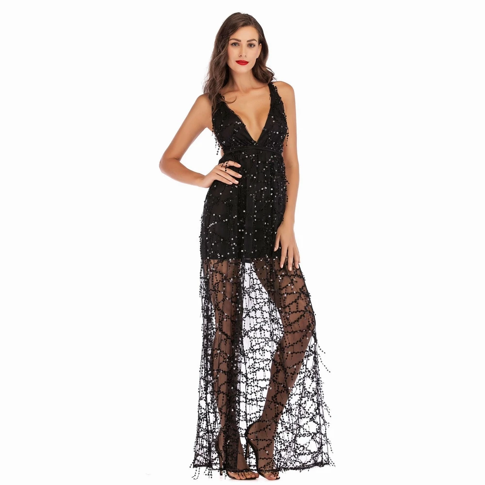 Item: | Deep V-neck Sequin Party Dresses For Women High Split Spaghetti Strap Long Gowns Women Evening Dress |