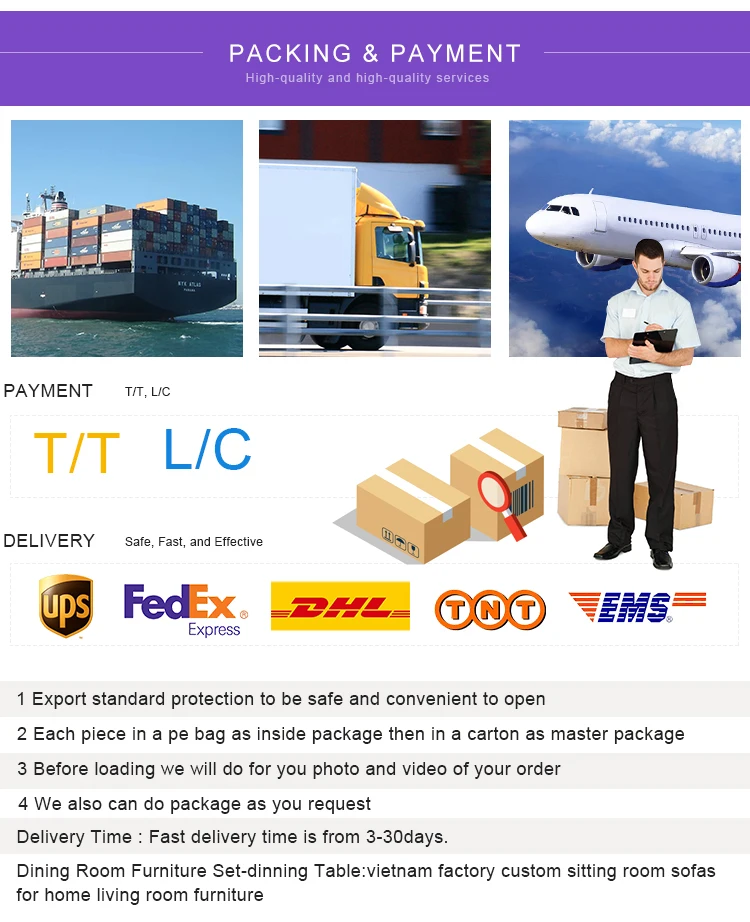Professional loading team to save space, Keep cargo safety 5.) Packing Cushion: PE bags . Furniture:Paper carton . 6.) Delivery