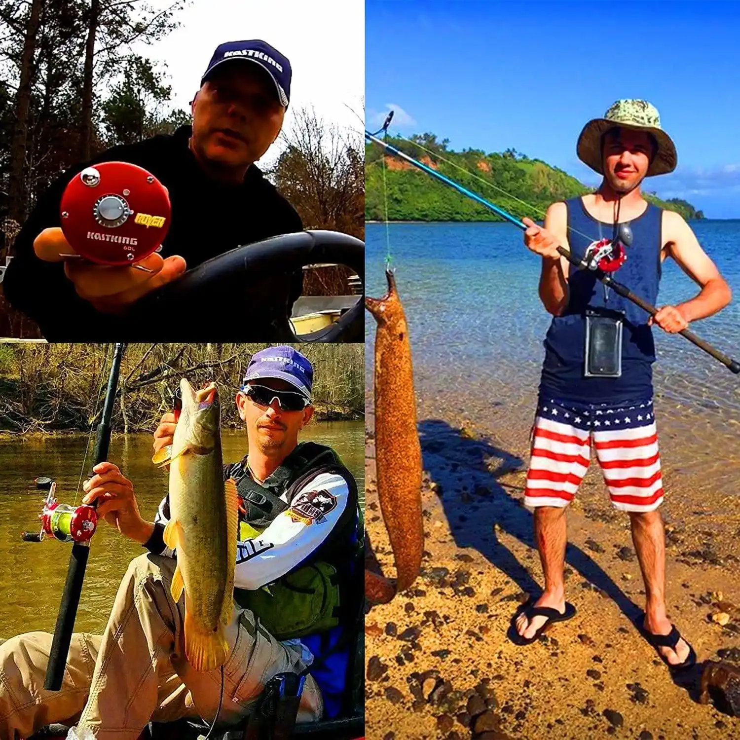 Product Name | kastking trolling reel | BULLET PROOF - The hot Rover reel just became hotter. The KastKing Rover round baitcasting reel has been reinforced with thicker hard anodized aluminum side plates, CNC machined spool, precision cut brass gears, all alloy flawless level wind, industry-first stainless steel worm gear, patented metal idle gear, stainless steel shaft and other components for superior durability and corrosion protection. MORE POWERFUL - You will love the stronger, more powerful KastKing Rover round baitcasting reel with a superior carbon fiber drag system. With its newly designed "Cymbal Washer" System, KastKing Rover now offers up to 30LB of smooth drag. SUPER SMOOTH - KastKing Rover reels have premium MaxiDur double shielded stainless steel ball bearings (6 + 1 BBs on Size 40-60, 4 + 1 BBs on 70 - 90) for smooth operation. VERSATILE - KastKing Rover is a perfect conventional reel for trolling, bottom fishing, and other techniques used in freshwater and saltwater (Size 40 – 60 with 2-pin centrifugal brake that is good for casting). The oversized nonslip EVA grips, line out clicker alarm, easy access thumb bar spool release (40-60 sizes) and the classic look are everything you would expect of a round baitcasting fishing reel. FISH INTO THE FUTURE - KastKing Rover conventional reels are built with functionality, quality, and are built to last. KastKing Rover Series deliver fantastic design, power, and performance at an affordable price. Anglers who want an affordable, dependable levelwind round baitcasting reel to add to their trolling reel fishing tackle will appreciate the low price and high quality of a KastKing Rover. |