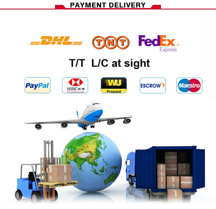8. Q: What's the Terms of Payment? A: We accept PayPal, Bank Transfer and Alibaba Trade Assurance, Western Union; Small/Sample order: Full payment before Production;Formal/Big Order: 30% deposit before the production, 70% balance before the delivery.