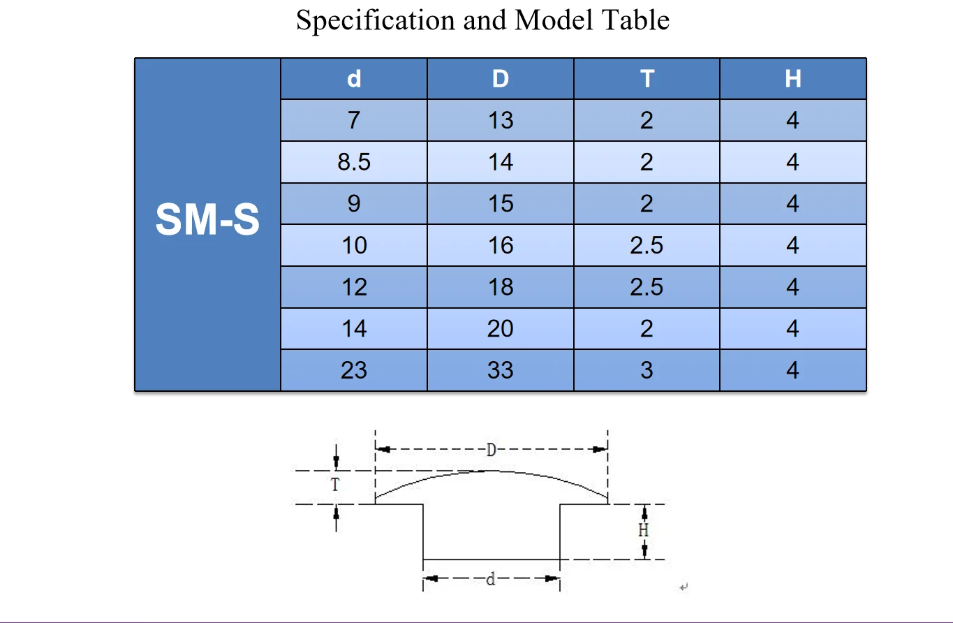 Size (mm) | D×T×d×H =13×2×7×4mm D×T×d×H =14×2×8.5×4mm D×T×d×H =16×2.5×10×4mm D×T×d×H =18×2×12×4mm D×T×d×H =33×3×23×4mm |