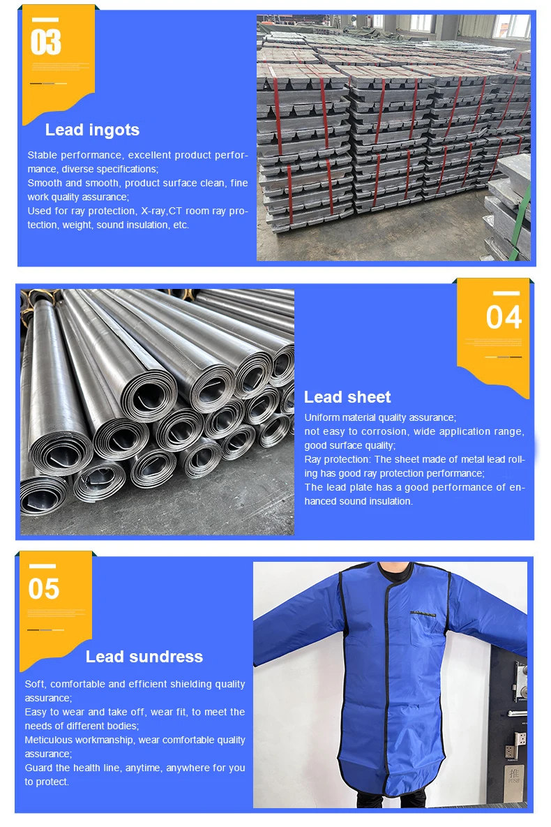 Main products: (anti-radiation, medical, protection) lead door, lead plate, barium sulfate sand, barium sulfate plate, airtight door, lead glass, lead room, lead screen, lead wire, radiation protective clothing, radiation protective glasses, radiation Radiation protection products such as protective devices. The company's products are exported to dozens of countries and regions such as Europe, America, Africa, Southeast Asia, etc., and are well received by users at home and abroad.