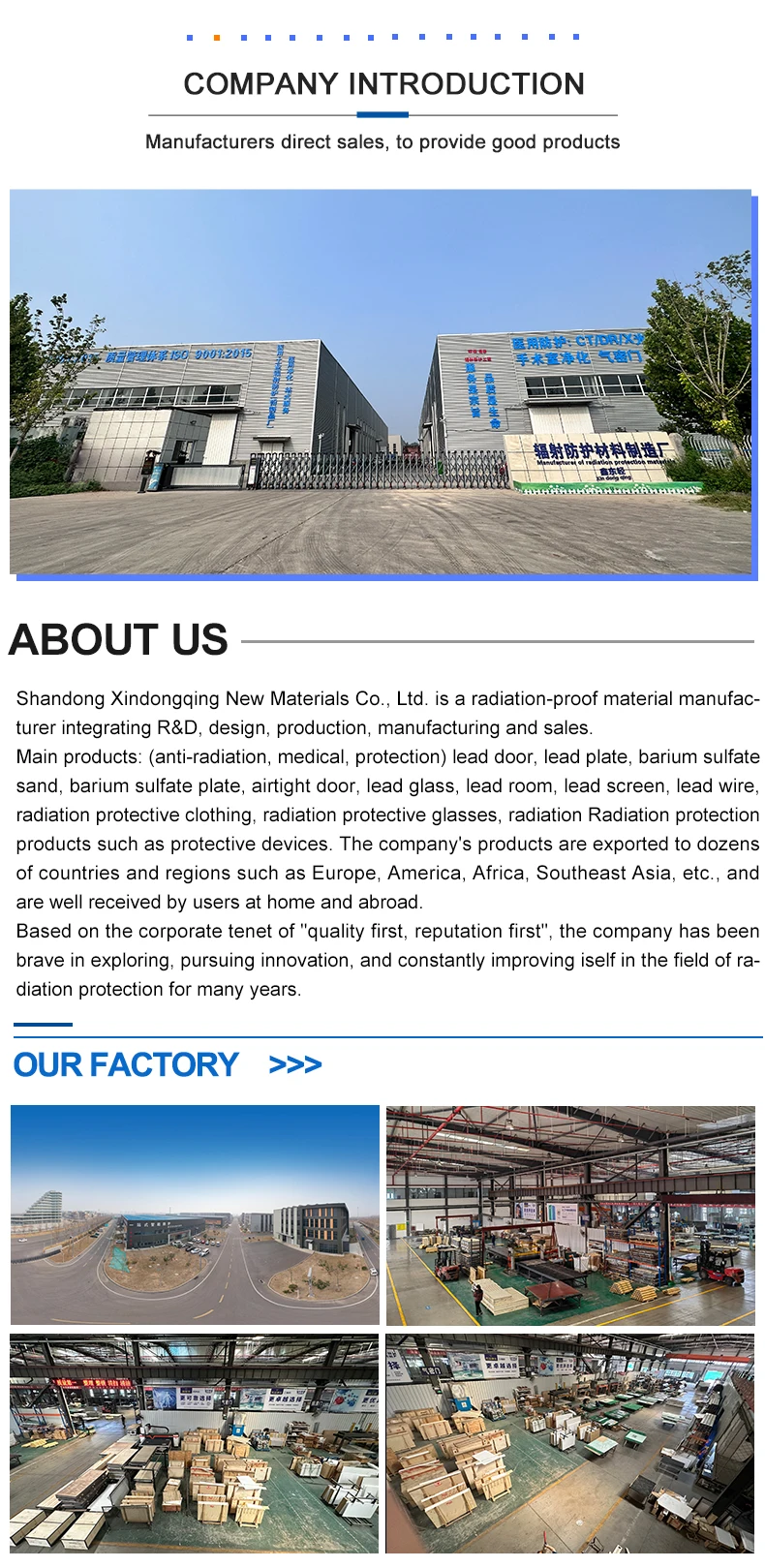 Shandong Xindongqing New Materials Co., Ltd. is a radiation-proof material manufacturer integrating R&D, design, production, manufacturing and sales.