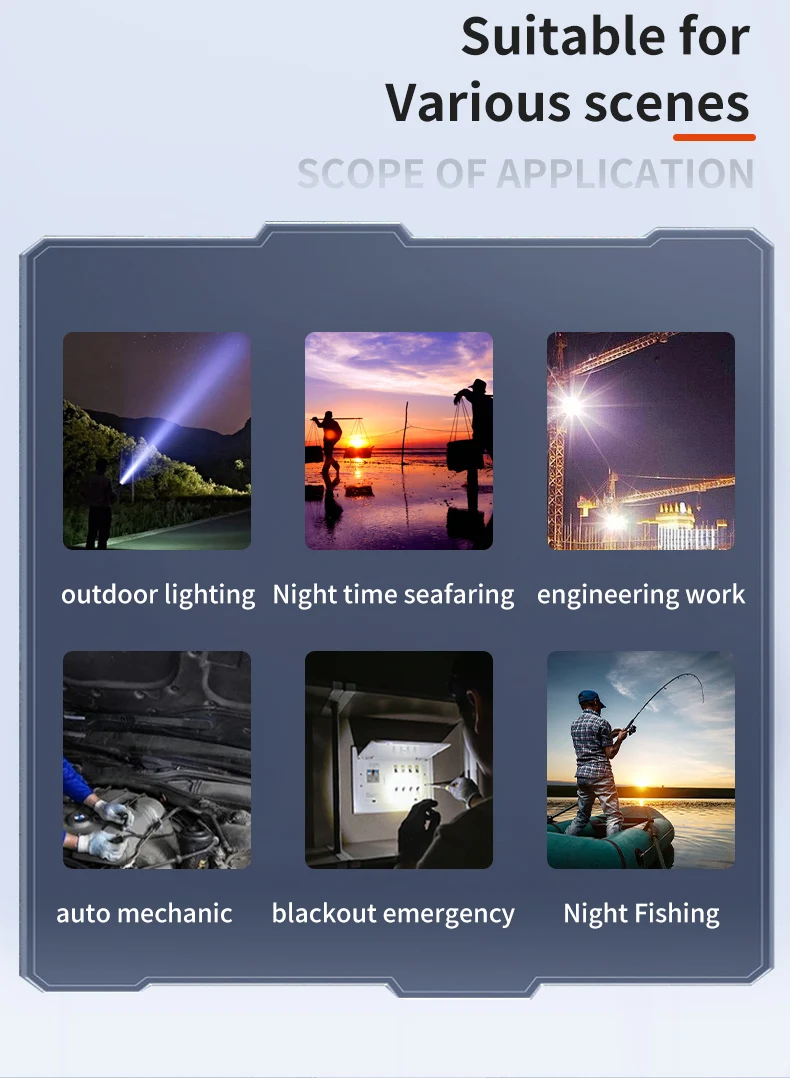 Scope of application: | night fishing/into the mountains/catching the sea/automobile repair |