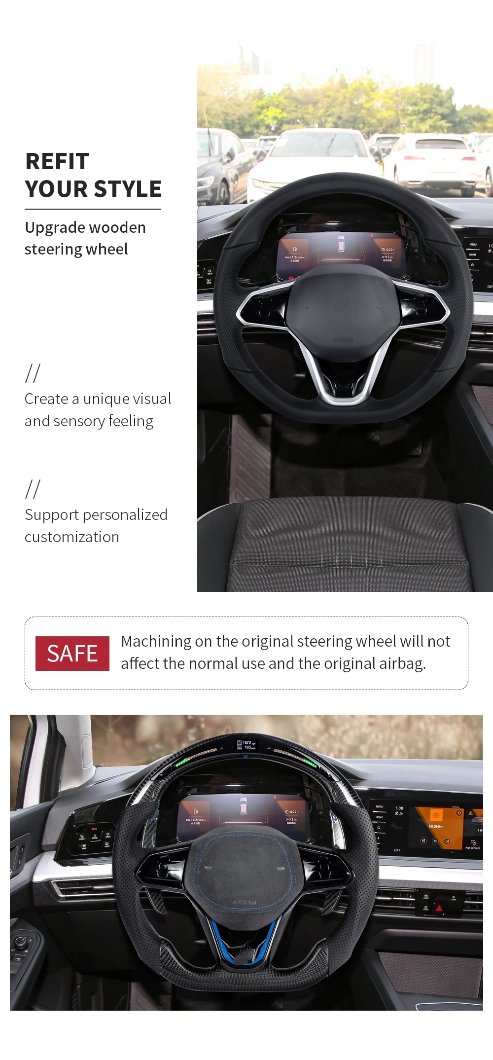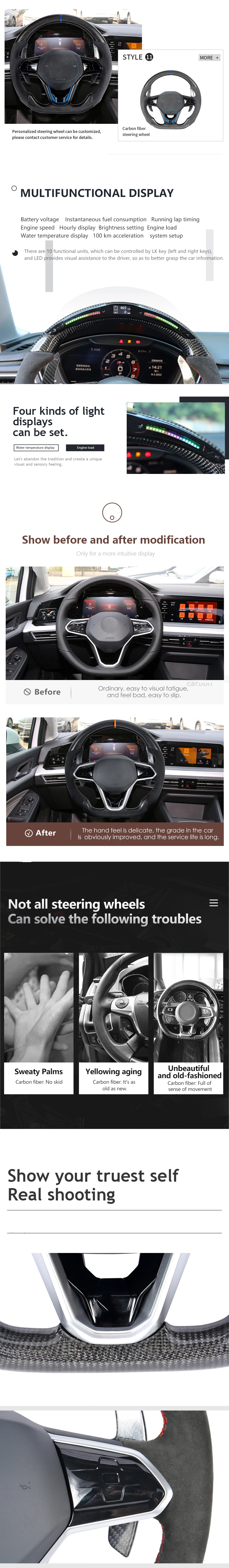 Leather carbon fiber steering wheel for VW RS Golf GTI mk6 mk7 mk8 gti gtr old model to new model plug and play steering wheel