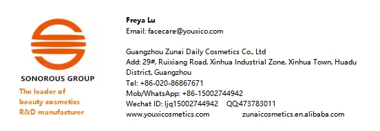 Guangzhou Zunai Daily Cosmetics Co., Ltd. is affiliated to Youxi Group. The company was founded in 2002. Strong R&D ability with twenty years experience Professional Sales team ISO9001, GMP, ISO22716 international quality system certification.