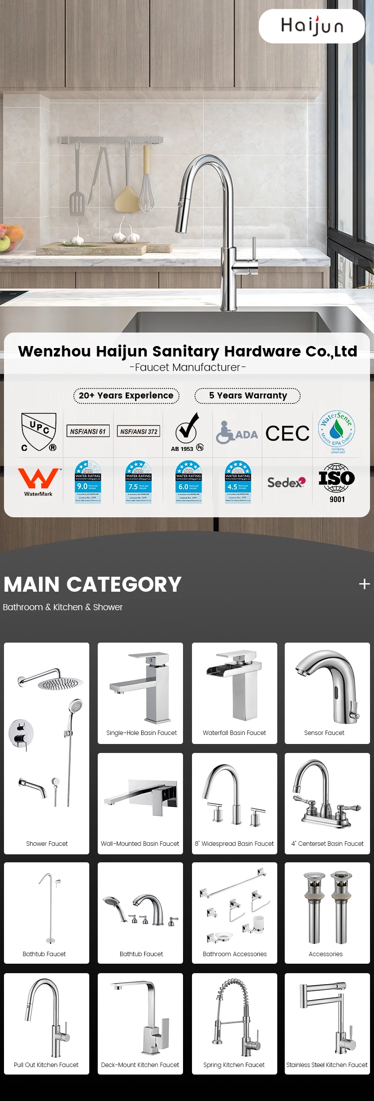 Certification | cUPC, NSF/ANSI/CAN 61,NSF/ANSI 372,AB1953(LEAD FREE) ,Watersense(EPA),ADA | ||||||