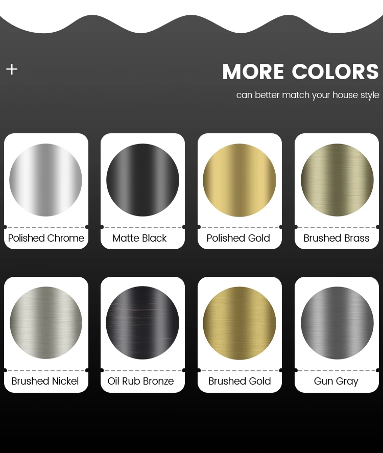 Surface Finish | Polished Chrome, Brushed Nickle, Matt Black,Oil Rubbed Bronze,Gun Grey,Brushed Brass,Brushed Gold,Polished Gold. | ||||||