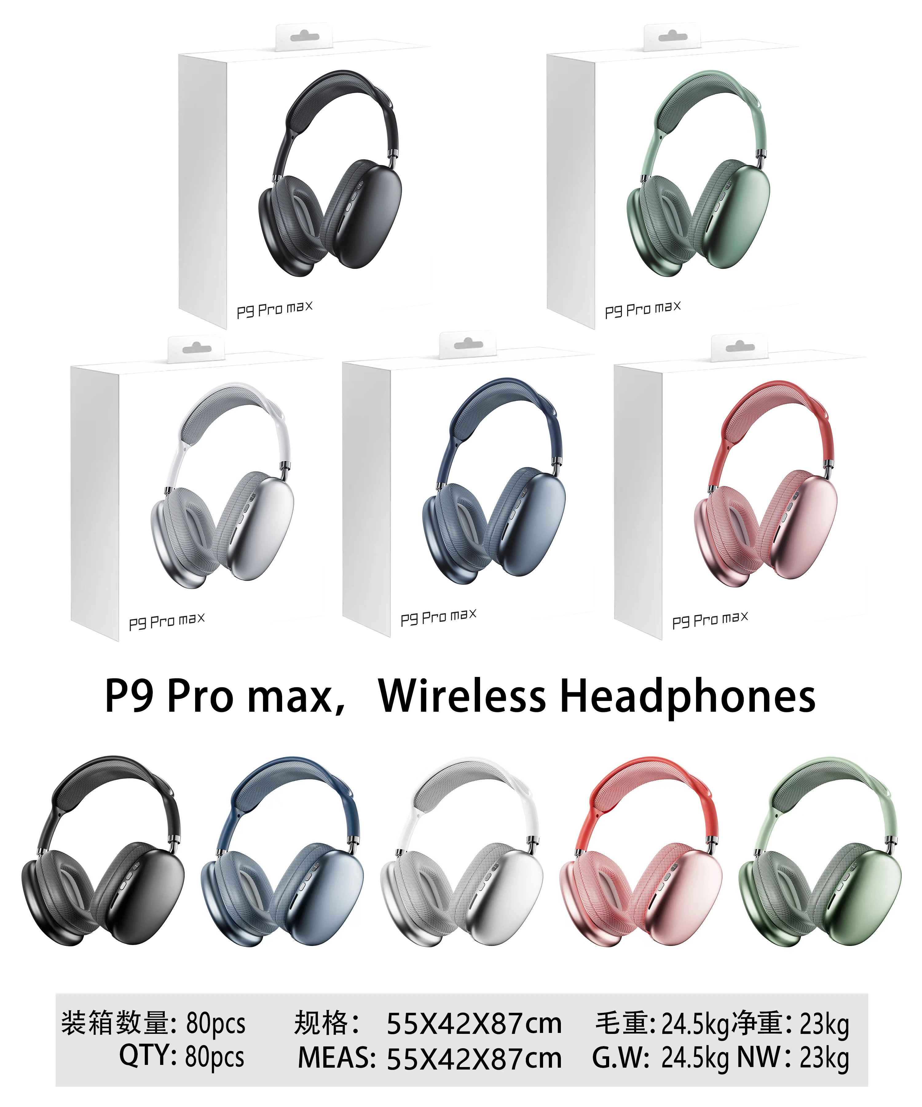 Product Name | Colorful Wireless Earphone Noise Cancelling Original P9 Pro Max TWS Wireless Headphone | ||||||