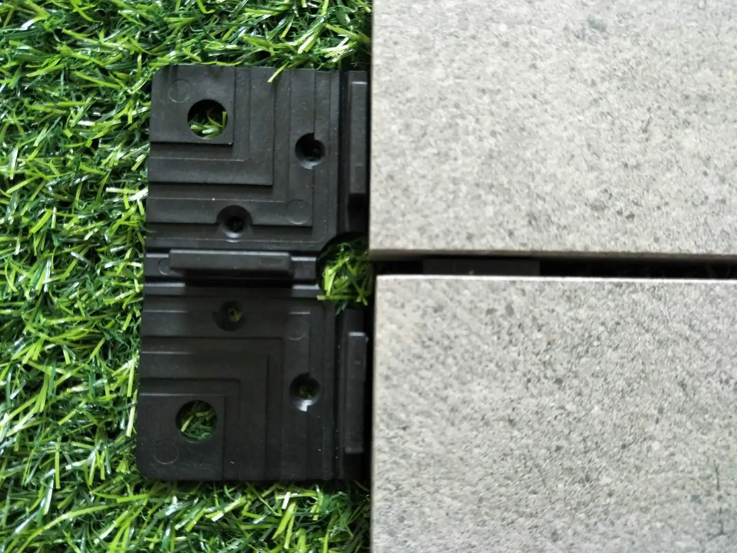 Connecting deck tiles securely is essential and so is water drainage. A pre-fabricated countersunk hole guarantees the securing of connectors to foundations when using trusted and proper fastening methods. Each connector can effortlessly be installed on most solid surfaces such as pre-existing wooden decks, roof tops or concrete slabs. That is, provided the surface is as even and smooth as possible.