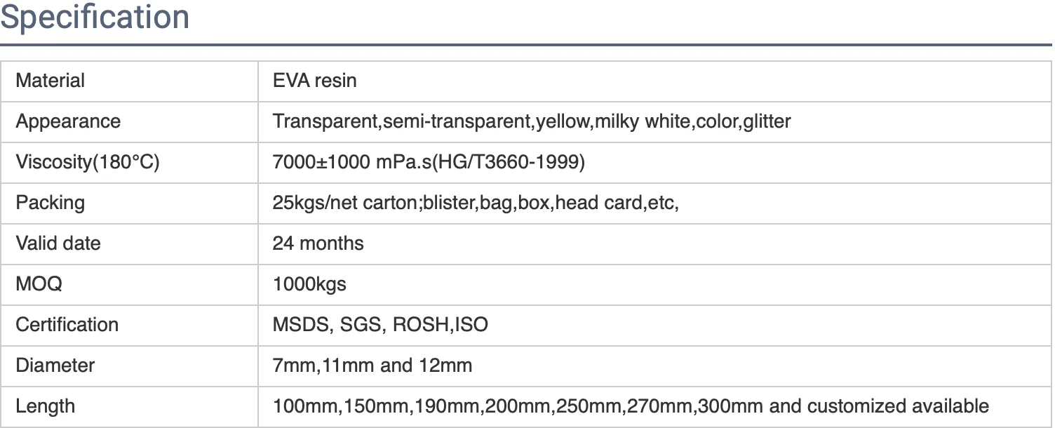 Both industrial and DIY hot melt glue sticks are available here.