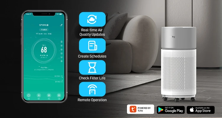 Set timers and schedules, check filter life, and reveive notifications with real-time qir quality updates.