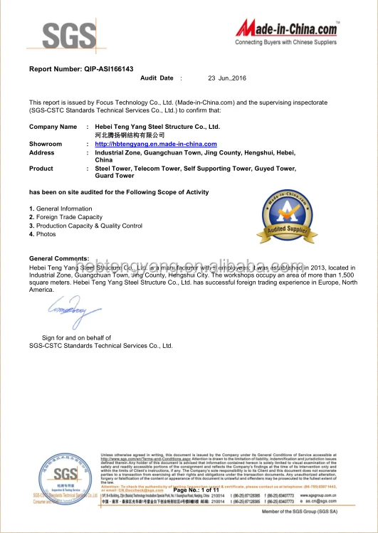 Our company has a wealth of theoretical knowledge and practical experience of the technical team. In recent years the construction of various types of steel tower strusture always are over 10000 sets. Annual production capacity is more than sixty thousand tons. As great quality, products is all over the world.