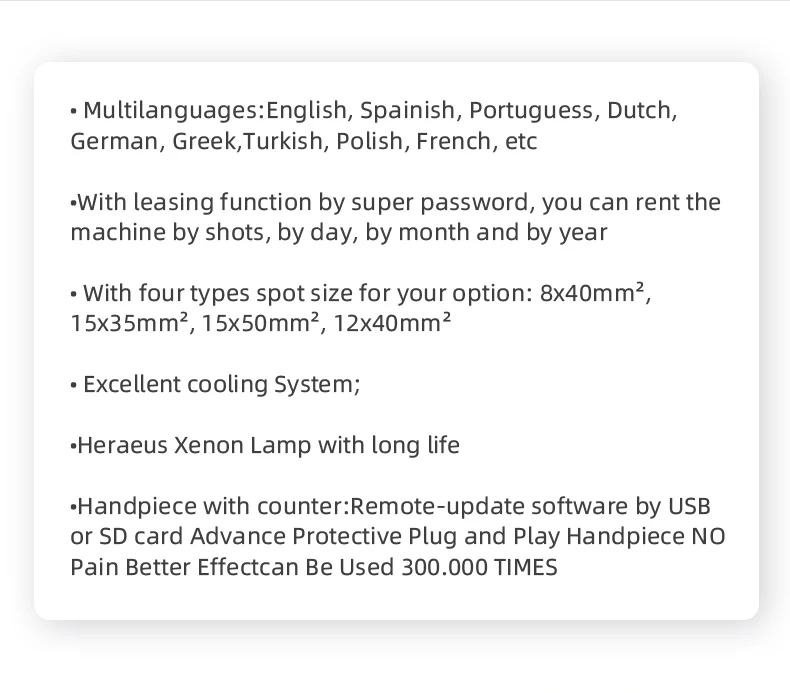 Spectrum range | SSR:560-950nm, Super Hair Removal: 640-950 nm | ||||