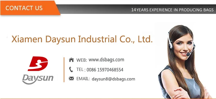 1. Are you a manufacturer or trading company ?Xiamen Daysun Industrial is a bag manufactory.