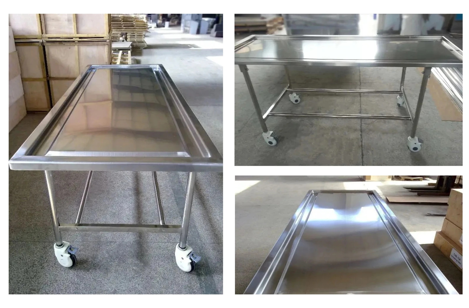 1.The Model THR-105 Operating Table is truly a combination table, ideal for embalming, dressing and transfer. An exclusive,one-hand release easily adjusts either end of the table from 32-1/2" to 38-1/2" with the ends being independently adjustable. 2.The table is constructed of a stainless steel top with a convex surface, tubular aluminum frame and 6" ball-bearing wheels. The swivel wheels lock to keep the table stationary while in use. The drain, located in the center of the foot end, quickly eliminates fluid from the table. It can stand on one end for storage behind a door or in a closet. Features 1.Folded table can stand on one end for storage behind a door or in a closet 2.Combination table ideal for embalming and transfer 3.Exclusive one-hand release adjusts either end of table from 32-1/2" to 38-1/2" 4.Ends are independently adjustable 6" wheels lock to keep table stationary while in use