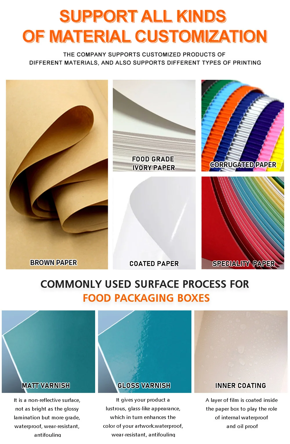 Material Options | (Food Grade)Ivory Paper,Kraft Paper,Corrugated Paper,Coated Paper,Art Paper etc. |