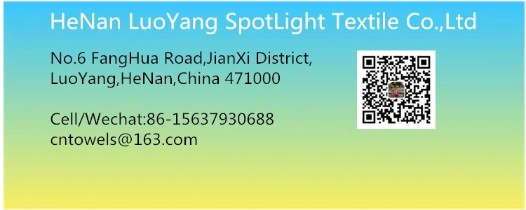 HENAN LUOYANG SPOTLIGHT TEXTILE CO.,LTD is professional textile product manufacturer in China,advantage products include cotton reactive printed towel,microfiber reactive print beach towel,microfiber sublimation print towel,digital print towel,round beach towel,kitchen towel,tea towel,cleaning towel,bandana etc.,Equipped with 5 advanced automatically magnetic bar screen production lines and sublimation print machine,this insure our large output and fast delivery.