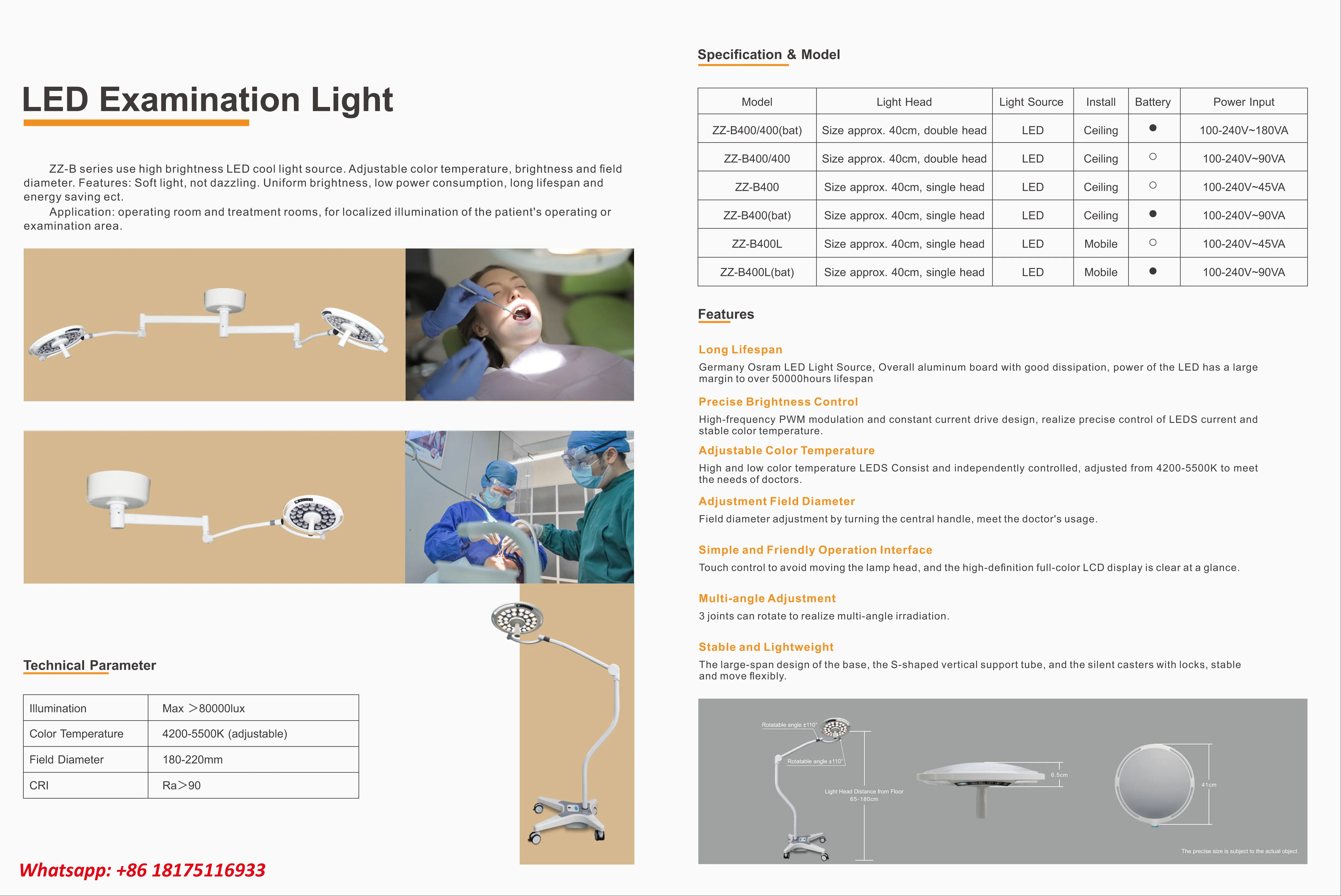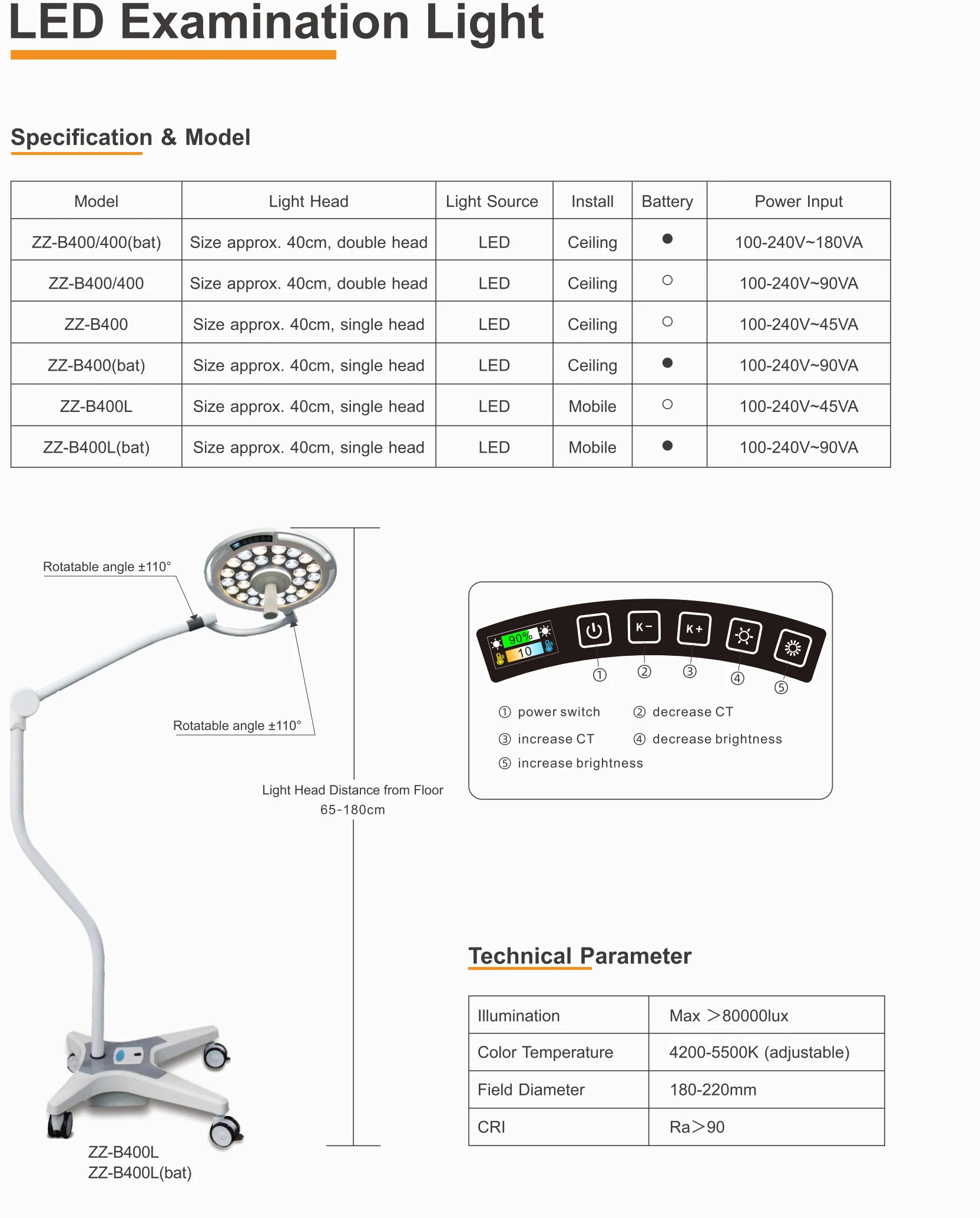 Spot Diameter | 180-220mm (adjustable) | ||