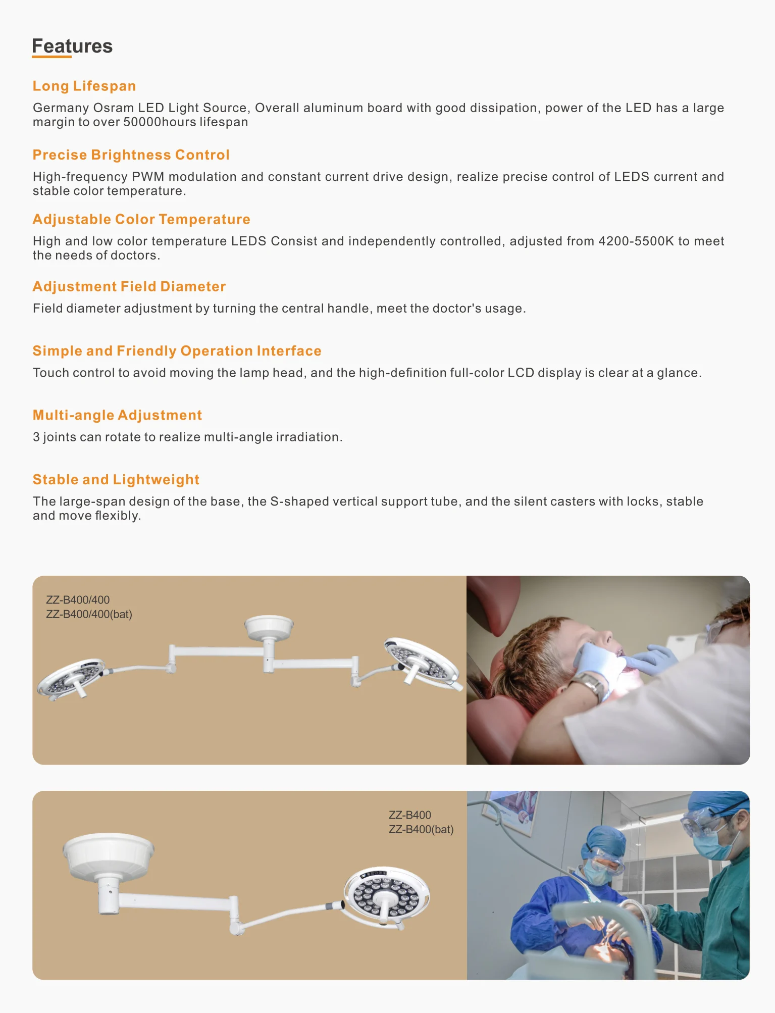 Model of lamp | 400 Lamp head | 500 Lamp head | |
