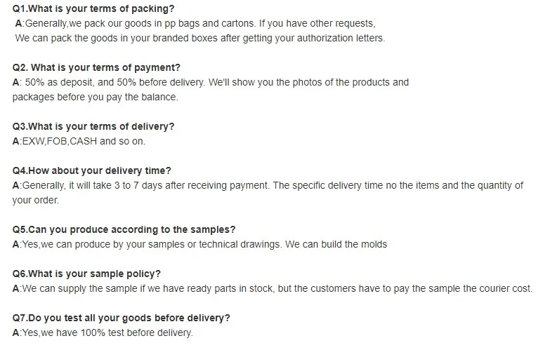Payment term | T/T. L/C, Western Union, Money Gram, Paypal,Escrow,Cash etc. | ||||||