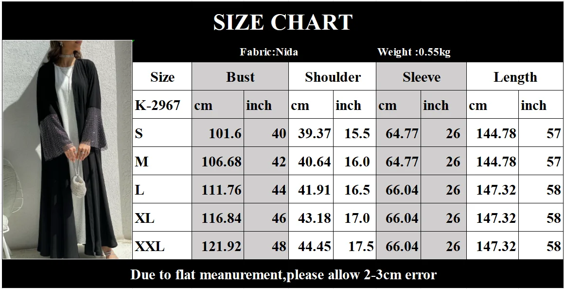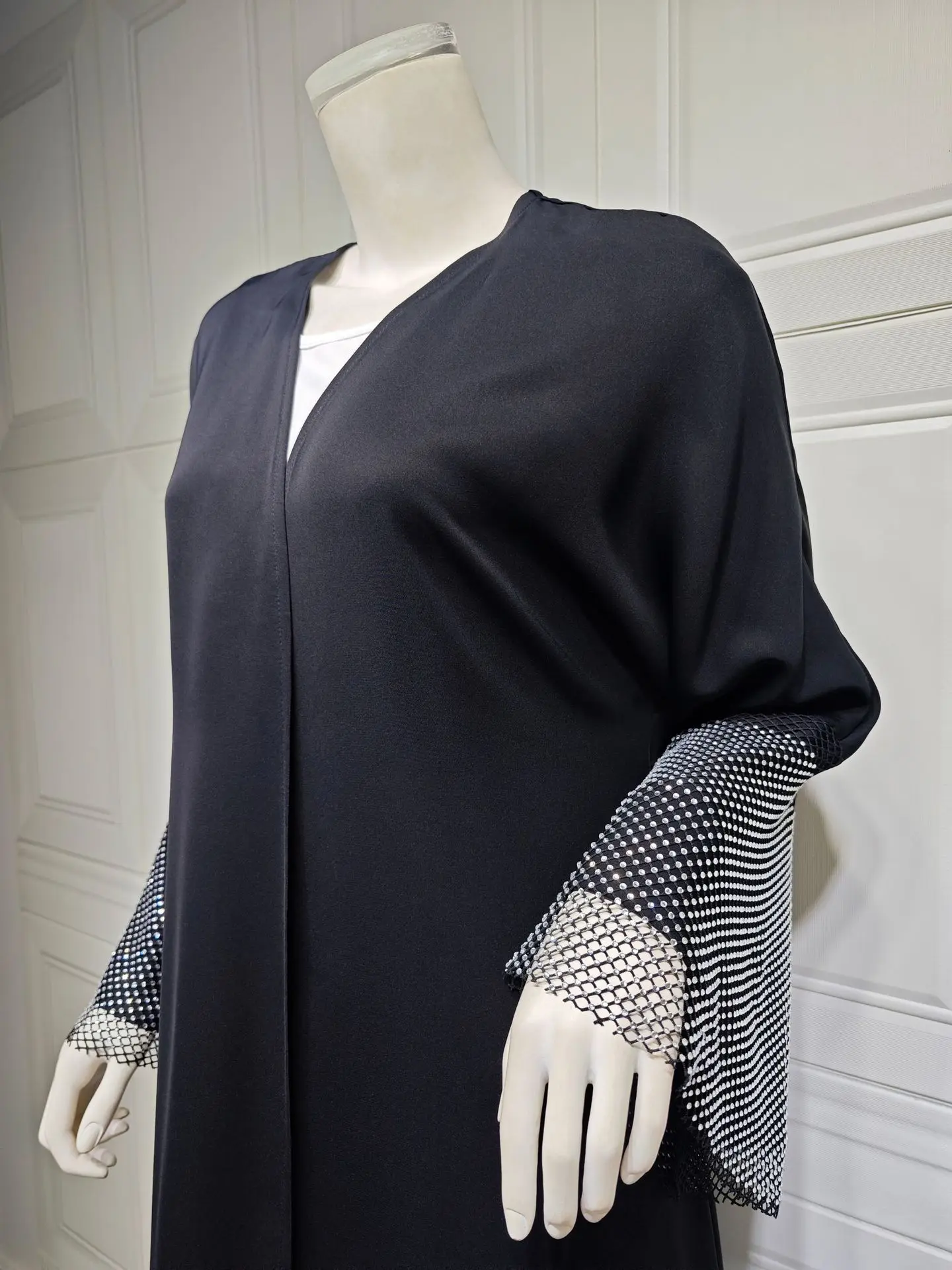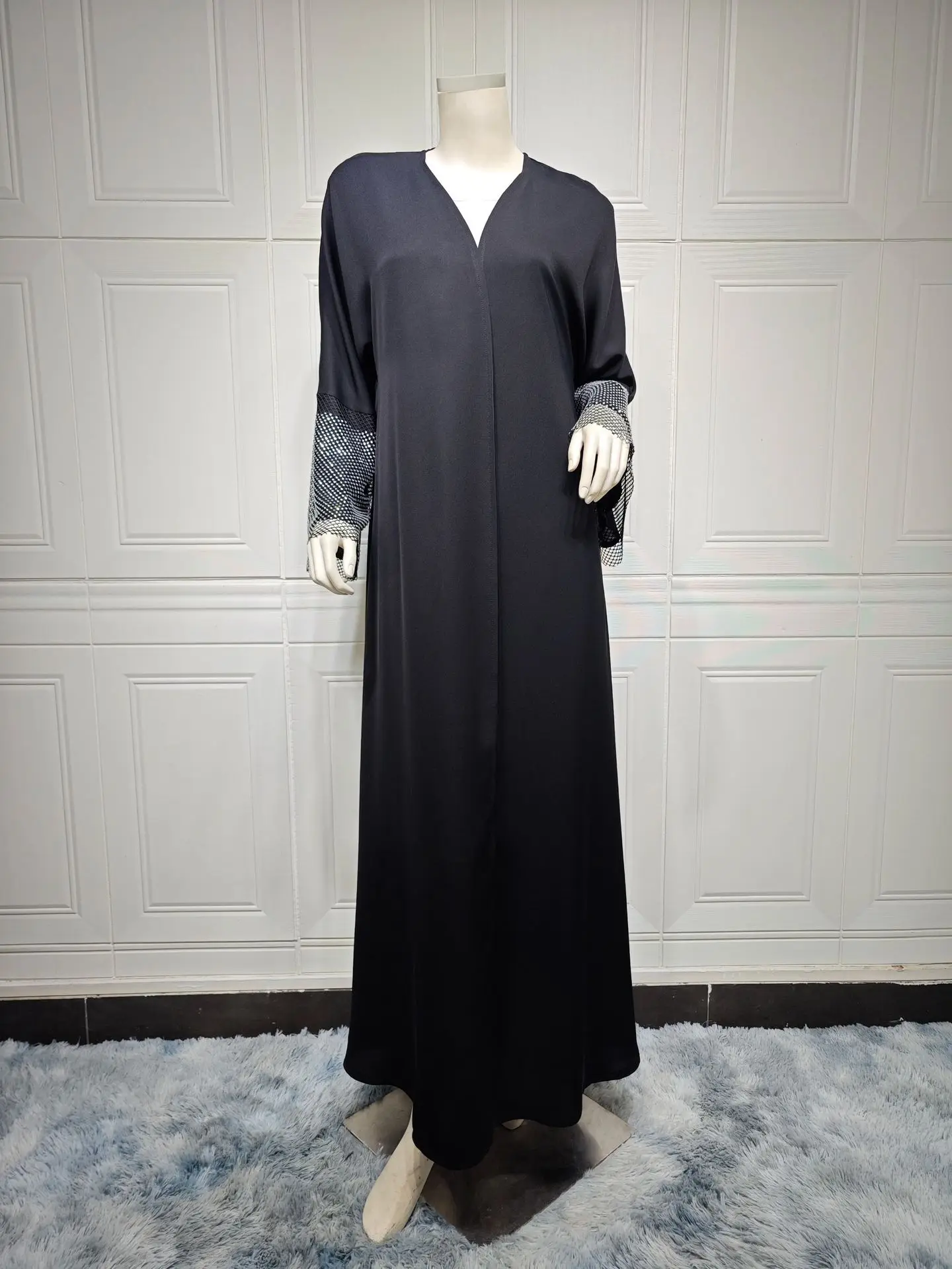 Middle East Exclusive Cardigan Nida Fabric for Abaya Stretch Drill Mesh Robe Turkish Arabic Muslim Women Open Black Abaya | ||