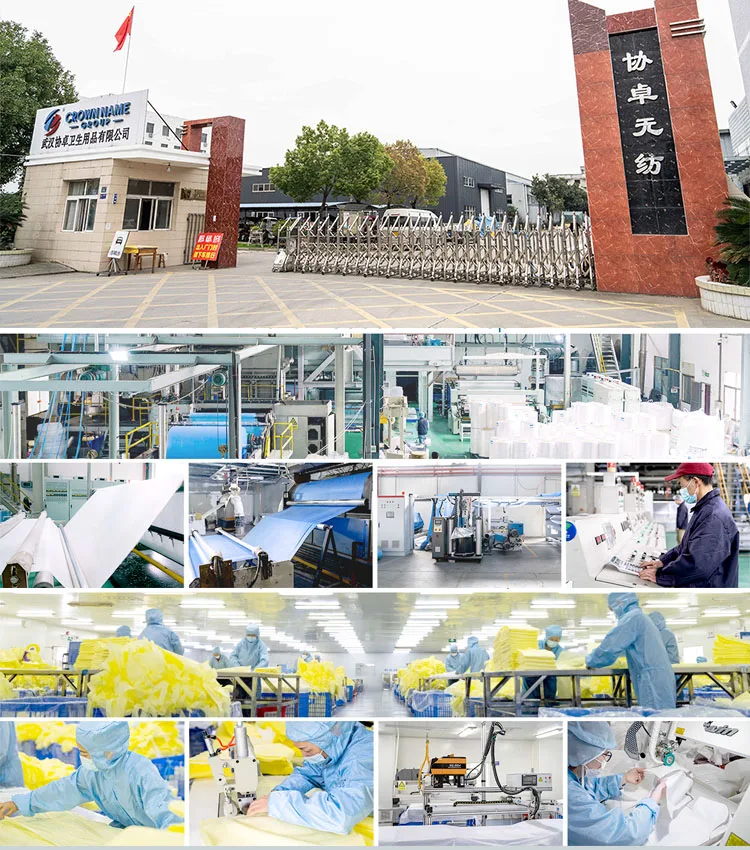 Crown Name was established in 1996. After over 27 years of expansion, we have had four companies - Crown Name (WH) United Co., Ltd., Crown Name (WH) Protective Products Co. Ltd., Crown Name (XF) Garments Mfg Ltd. and Crown Name (WH) Disposable Hygiene Products Fty Ltd. Main products include non- woven products, plastic products and workwear. They are widely used in hospitals, industry, healthcare, agriculture, hotels, laboratories, etc. Besides 25,000 square meters of finished product workshops, our 10,000-square- meter production facility is equipped with 1 spun-bonded non-woven line, 2 melt blown lines, 3 SMS lines and 4 composite lines. We can supply our customers with different kinds of PP spunbonded fabrics, melt-blown fabrics and microporous fabrics as well as SMS, SS and S/PE/S composite materials.