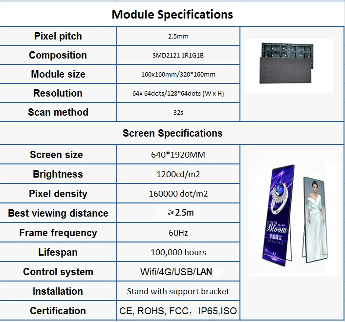 Store specific LED P2.5 advertising screen poster screen ultra thin asynchronous control