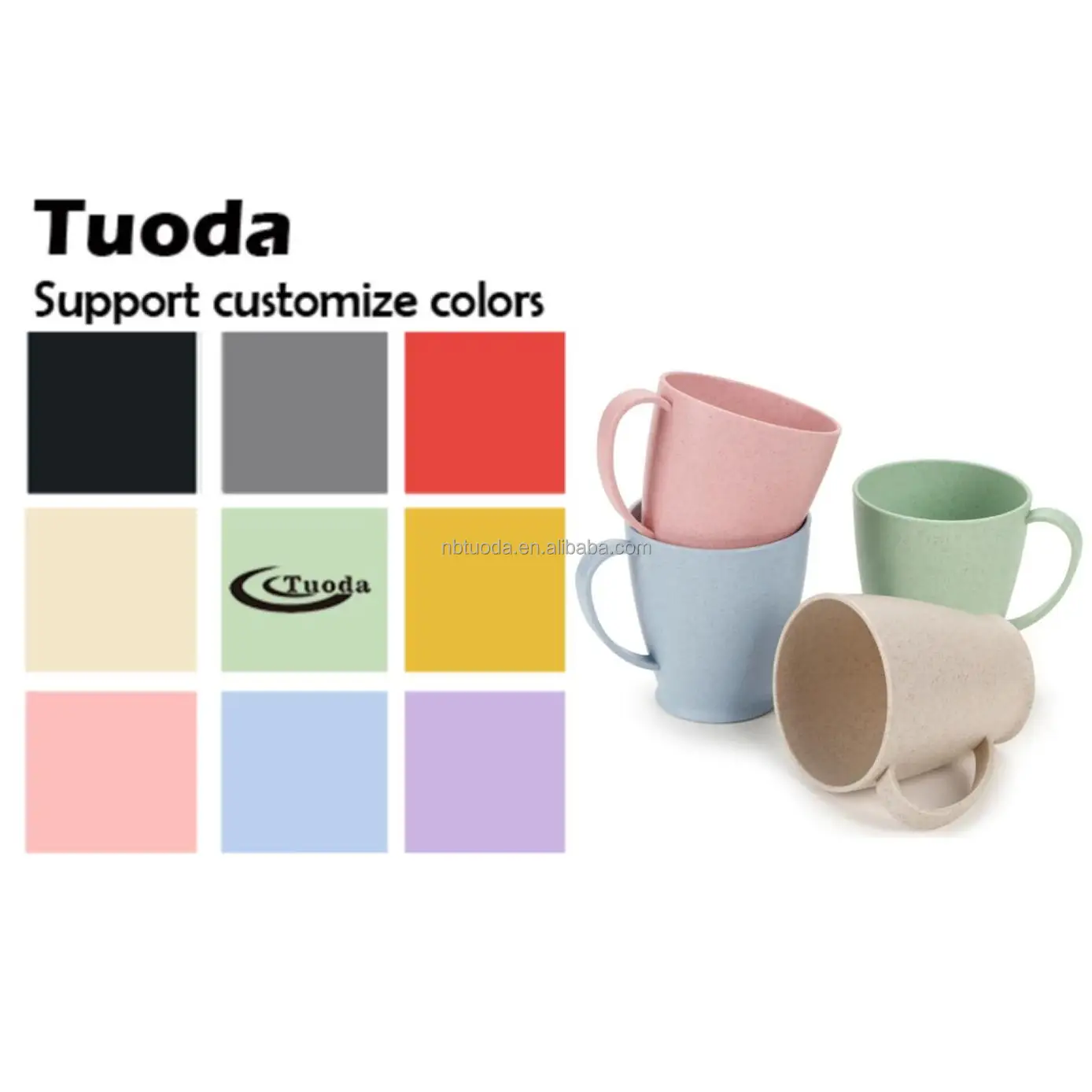 TD1 Reusable Wheat Straw Mug Drink Cup BPA FREE Tumbler Cup Handle Coffee Mug