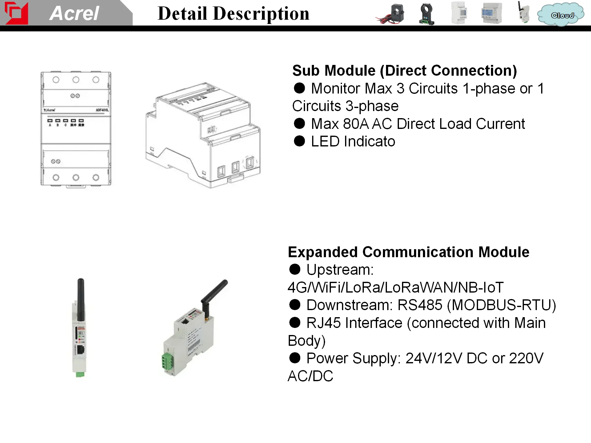 Slave module | Transformer access slave module 4DI+4DO,Among them, DI is 220V wet contact input | |||||