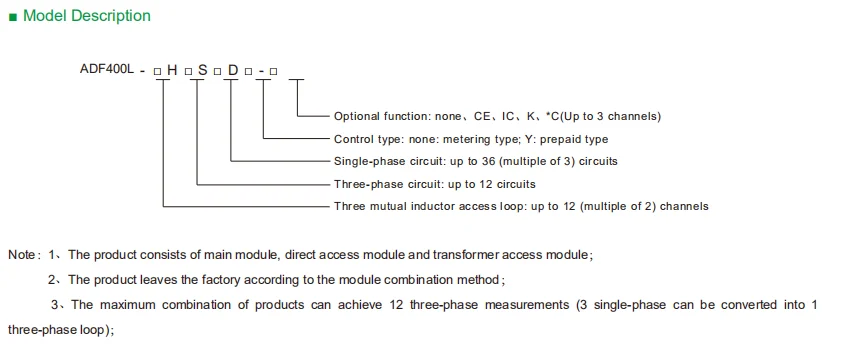 Electricity measurement | Voltage, current (zero sequence current), power factor, frequency, active power, reactive power, apparent power | ||