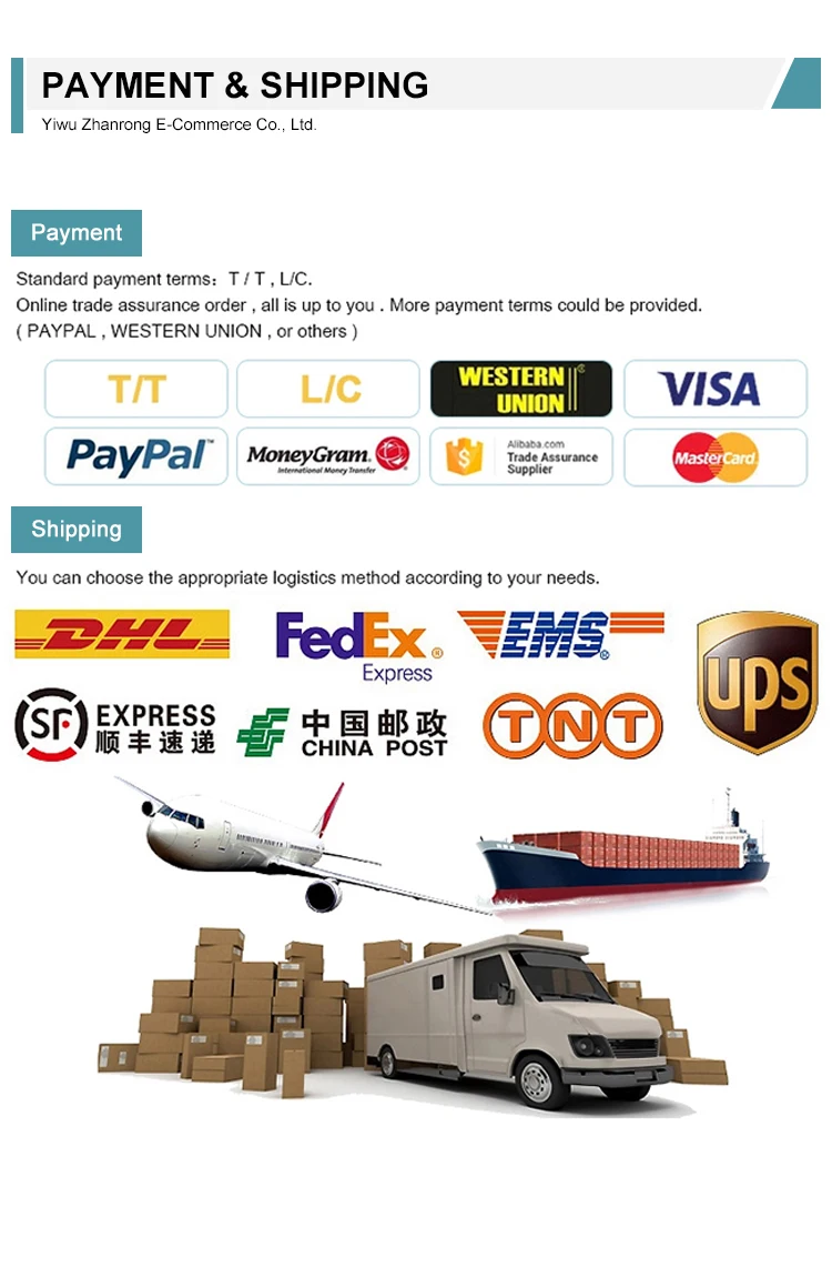 Terms of payment | We accept payment terms: T/T, WESTERN UNION 1) T/T: 30% deposit upon approval sample, the balance paid before shipment. |