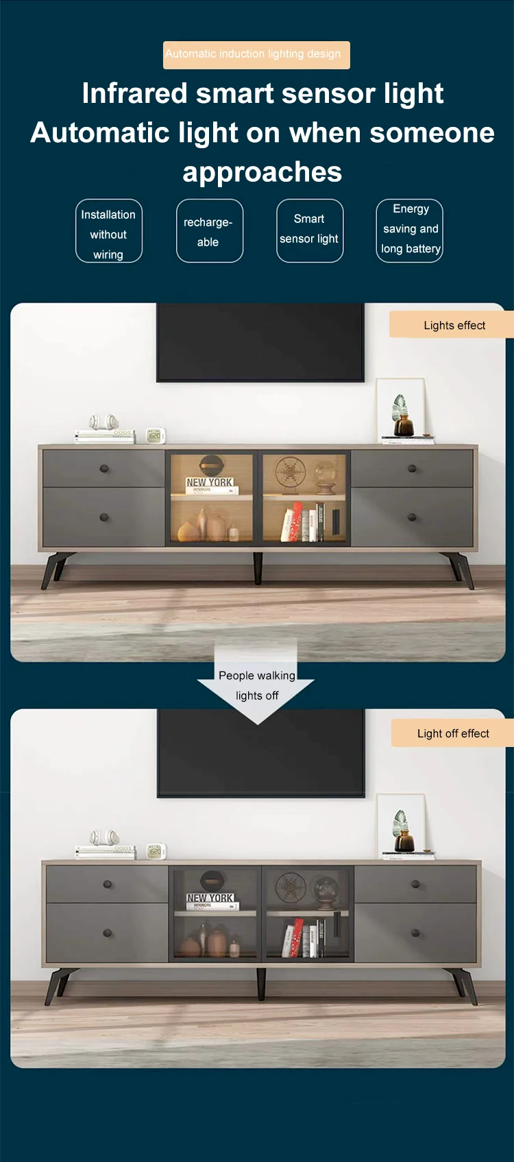 Enjoy Smart Home Gold Supplier Design Novel Modern Luxury Cabinet TV Rack Cabinet With Light