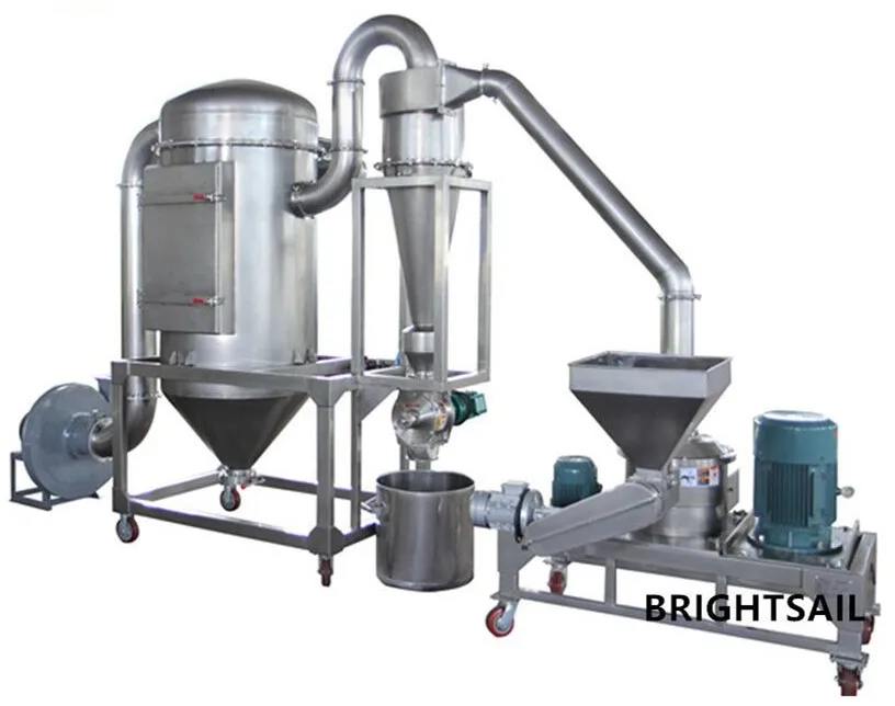 BSP2023 Brightsail zinc stearate powder 300 mesh fine powder mill grinding grinders machine air classifier mill for sale are made up of crusher, cyclone, dust collector, blower and electric control box with the capabilities of winnowing, non-sieve or mesh, equality of granule size, and continuous processing etc. It meets the international advanced level and is suitable for the material grinding by the trade of herb, chemical, and foodstuff etc.
