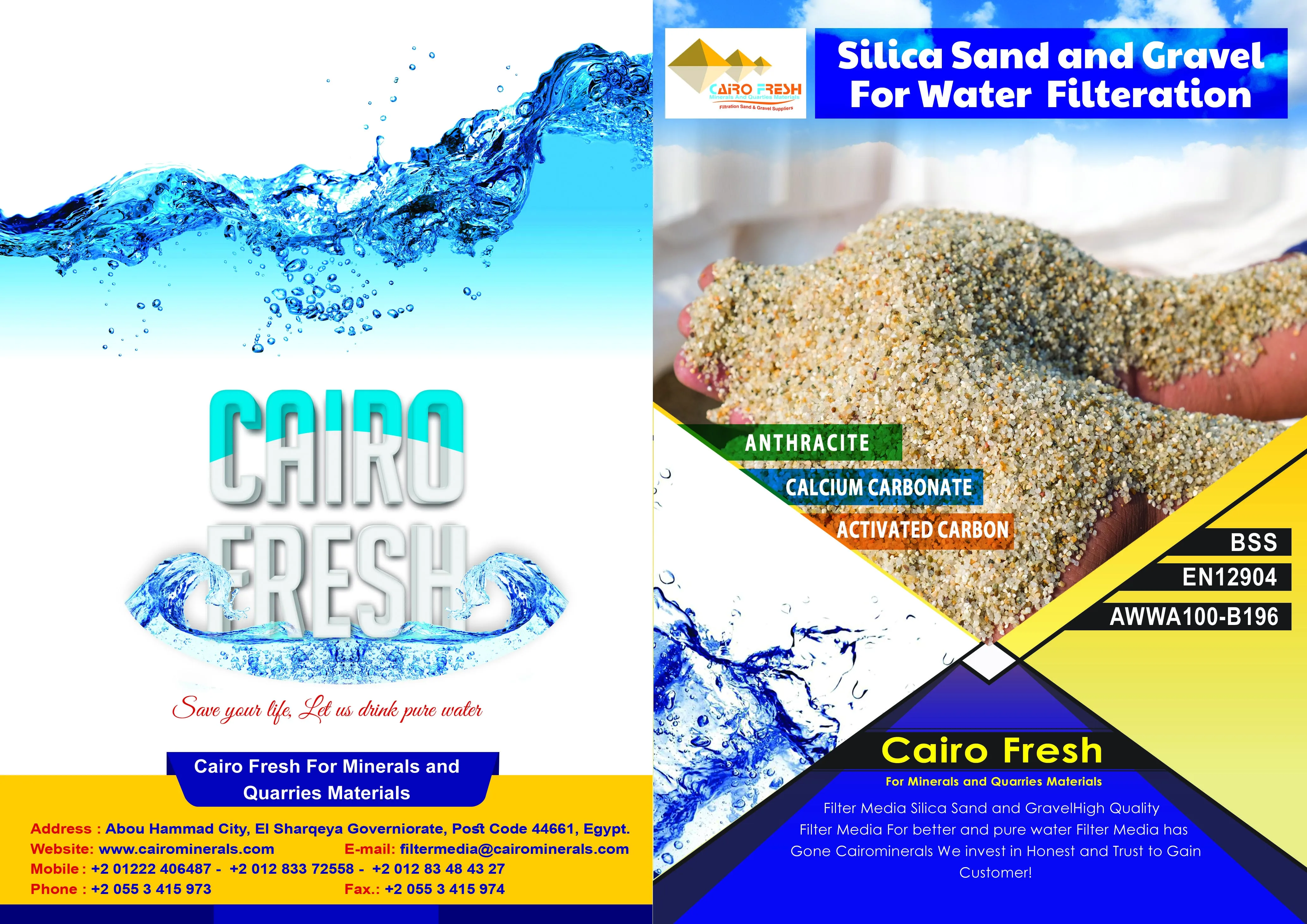 The Company was Founded in 2004 as Individual Corporation owned By Mr. Ahmed El shazly after a long Experience in Raw materials practicing. We Have Started Our Business In Exploring And Grading All Types Of Quartz Silica Sand Either Raw Material Or Graded In Different Sizes Either In mm Or According To Astm Mesh Numbers, The Main Goal We Took In Account That Our Wealthy Country With All Minerals With High Purity As Silica Sand, Quartz Ore, Kaolin, Dolomite, Lime Stone, Calcium carbonate, quick lime, micro silica, hydrated lime Aggregate. Gravel, Coral Pebbles. Decoration Pebbles. Filter Media Quartz Silica sand, Filter Media Silica Gravel ACCORDING TO EN12904 and AWWAB100396, Golf Course sand according to USGA We Have Our Own Production Site With Many Screening Plant And Our Own Machineries.