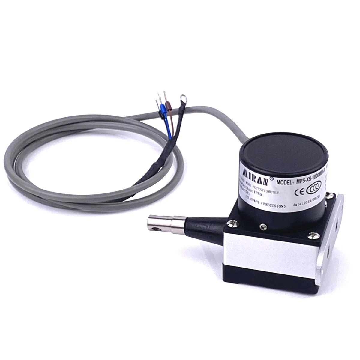 Miran Draw Wire Potentiometer MPS type is widely used in storage positioning, dam protections, sluice gate control, screw machines, paper machines, sewing machines, sheet metal machines, printing machines, horizontal control equipment, construction machines, industrial robot, injection machines, woodworker machines, elevators, air compressors, hydraulic machines, X-Y axis displacement, liquid level measurements and position control. XXXS:100-200mm XXS:100-800mm XS:100-1000mm S:100-1250mm M:1100-4000mm L:4500-8000mm XL:9000-100000mm There are 6 kinds of output as below,please choose the one you need. R: 0-5KΩ Resistance V1:0-5V V2:0-10V A1:4-20mA with 3 wires A2:4-20mA with 2 wires P:incremental pulse phase output AB phase or ABZ phase. | ||