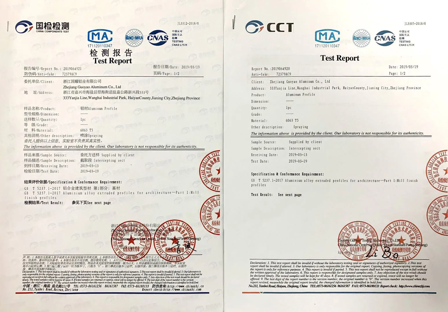 Certification Available | 1. GB/T28001-2001(including all the standard of OHSAS18001:1999); |
